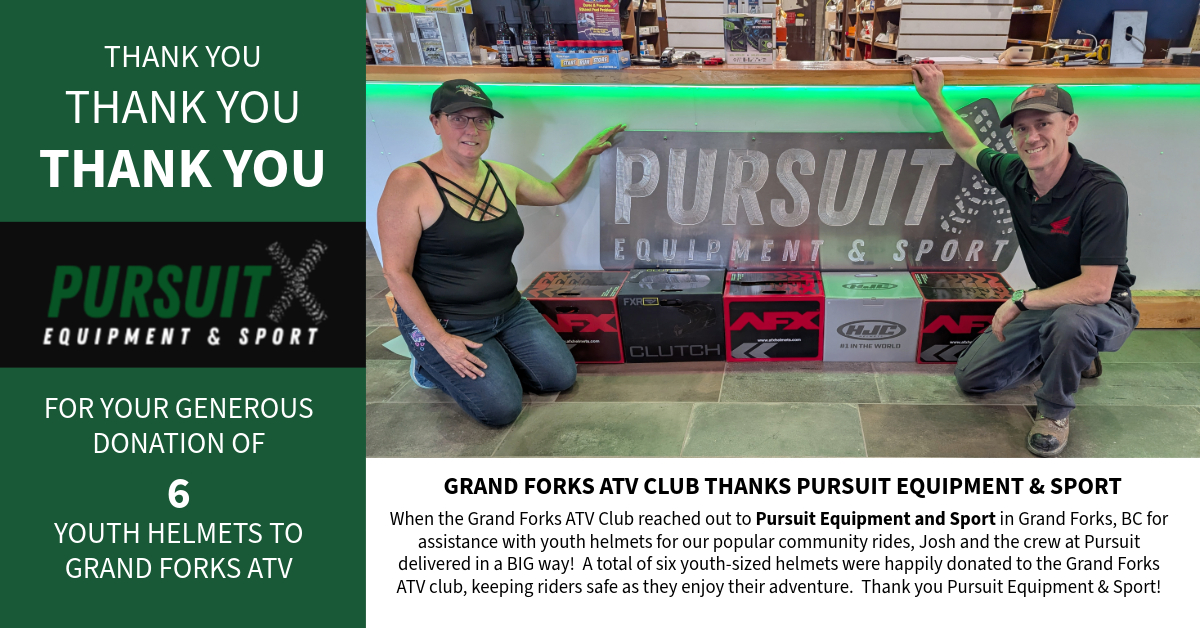 Pursuit Equipment & Sport, Wow! Thank you, Josh, and the team at Pursuit Equipment and Sport for your generousdonation of six youth-sized helmets to the… Read More »Donation from Pursuit Equipment & Sport
